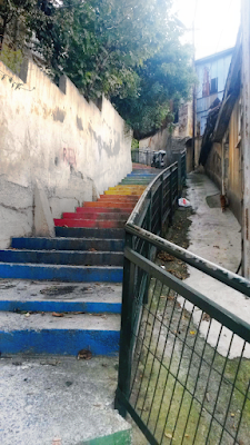 After the visit to my uncle and grandfather's graves was over, we decided to use this path to go down. The surroundings were not-so-glamorous; but the rainbow colored ladders glistened among the non-glamorous. If you know the anime "Zankyou no Terror", you know the song "Von". The lyrics go: "Þar sem gróir þar er von." Which means: "Where things glow, there is hope."